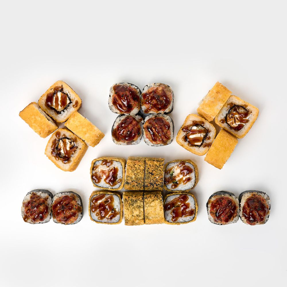24 шт: ролл маки гриль мидии, ролл темпура барбекю, ролл амай хотто темпура