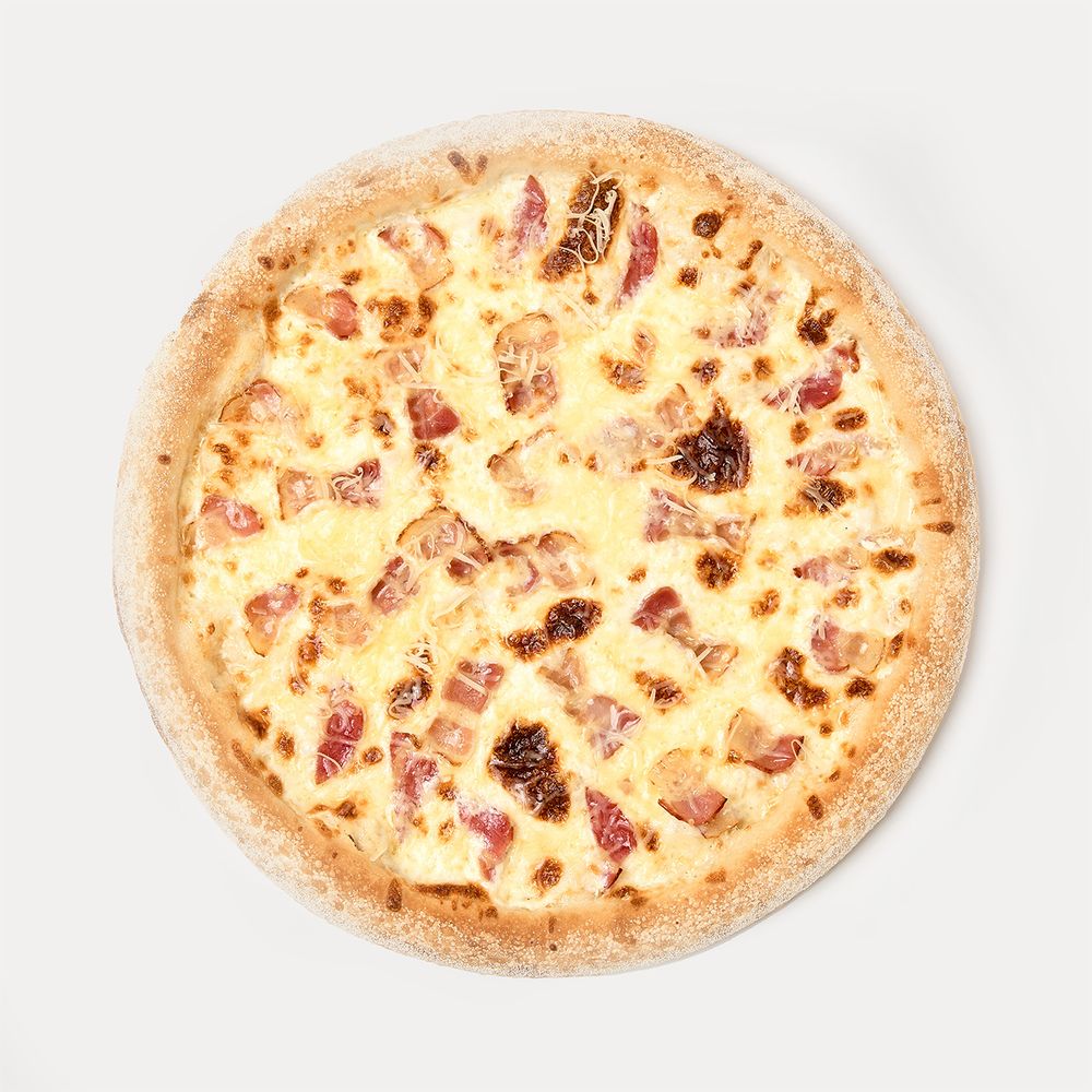 Сливочный соус, сыр моцарелла, сыр пармезан, бекон